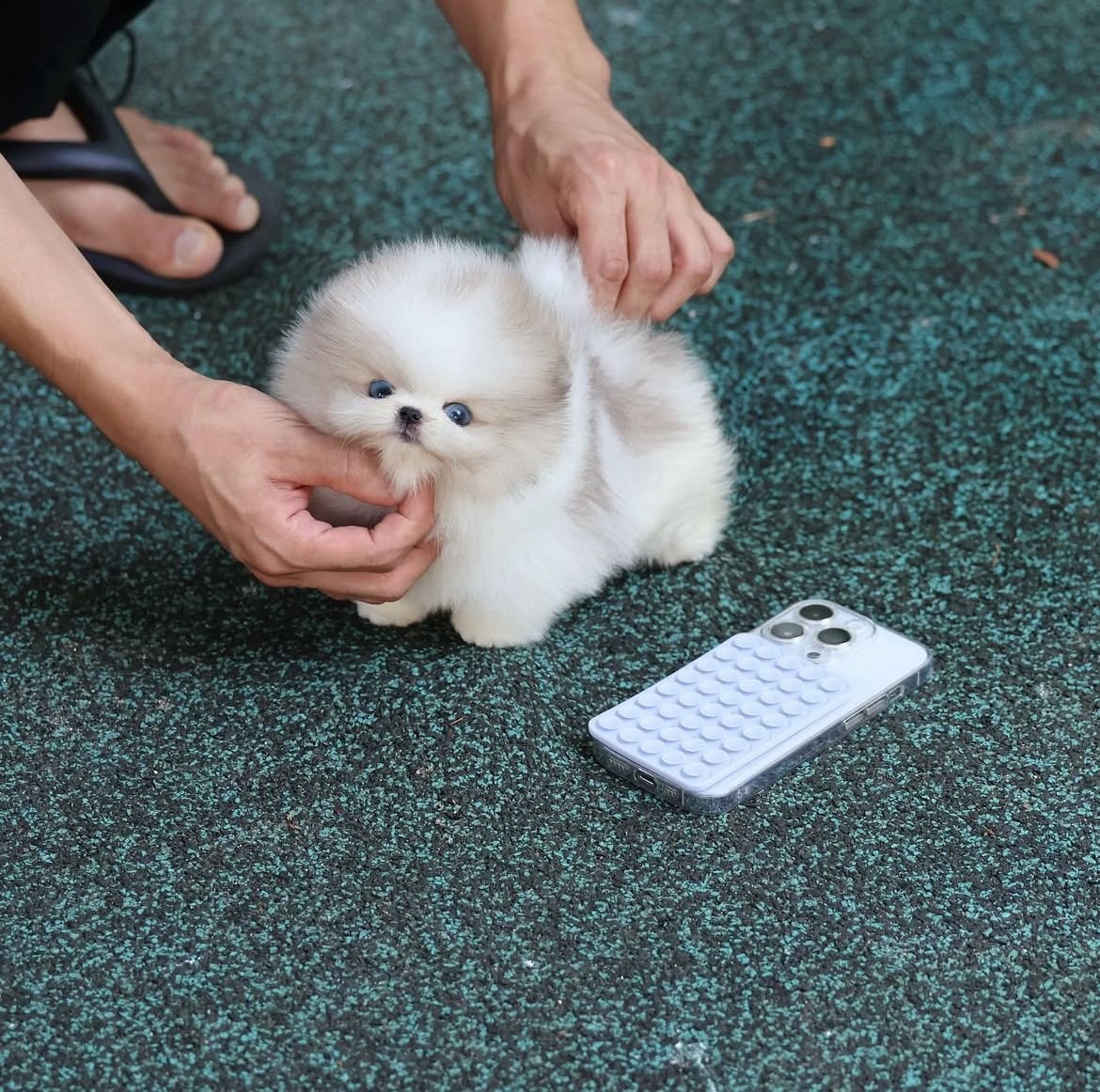 Meet our breathtaking merle Pomeranian baby girl, a rare beauty with a soft gray merle coat and two stunning blue eyes that sparkle like crystals. At just 7 weeks old, sheβs unbelievably tiny β smaller and cuter than an iPhone! π©Άπ±