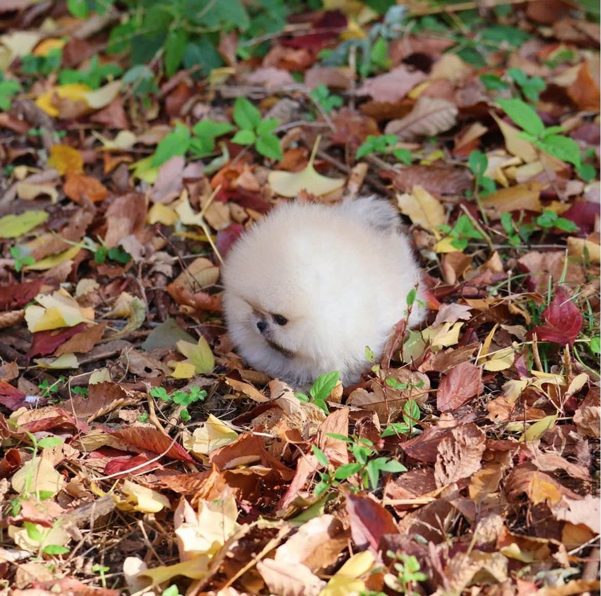 🌸 Perfectly compact, with short legs and a fluffy cream coat